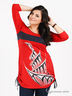 Модная туника из вискозного материала средней плотности с укороченным рукавом и округлым вырезом горловины. Сборки снизу по боковым швам. Контрастные вставки, изделие украшено ручной росписью. Яркий вариант на каждый день.