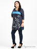 Модная туника из вискозного материала средней плотности с укороченным рукавом и округлым вырезом горловины. Сборки снизу по боковым швам. Контрастные вставки, изделие украшено ручной росписью. Яркий вариант на каждый день.