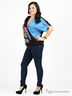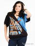 Модная туника из вискозного материала средней плотности с коротким цельнокроенным рукавом. V-образный вырез горловины с запахом, запах сшит сверху, ниже держится за счет ремешков. Низ изделия посажен на манжету. Контрастная вставка, изделие украшено ручной росписью. Отличный вариант на каждый день.