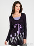 Детали: полочка с эффектом двойки, длинный прямой рукав, завышенная талия подчеркнута атласным пояском, низ изделия декорирован фактурной росписью