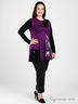 Детали: полочка декорирована пристроченным хлястиком на пуговице, длинный прямой рукав с простроченными горизонтальными складками, один карман, полочка декорирована росписью