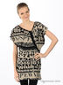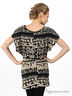 Детали: круглая горловина, широкие заниженные проймы, на полочке косая планка со сборкой