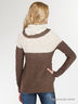 Вязанная туника с длинными рукавами и высоким воротом. Туника выполнена из различных видов вязки и контрастных нитей, в комплект входит ремень.