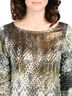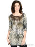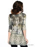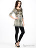 Детали: рукав 3/4; оригинальный принт; на талии шлевки, в которые продет тонкий пояс; на полочке оригинальные аппликации