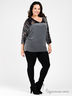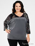 Детали: круглый вырез; рукав 3/4; верх изделия и рукава дополнены вставкой с оригинальным принтом и аппликациями