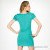 Трикотажная туника с прямым силуэтом бирюзового цвета. Круглая горловина. Короткие рукава, декорированы тканевыми цветами и сборками. Манжеты рукавов и низ изделия посажены на трикотажные резинки.