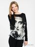 Стильная туника прямого силуэта с округлым вырезом горловины. Шелковистая основа средней плотности, рукава из полушерстяного трикотажа средней плотности. Изделие украшено рисунками. Будьте в центре внимания.