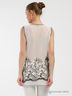 Для тех, кто любит яркую и стильную одежду прекрасно подойдет туника с округлым вырезом горловины на широких бретелях. Покрой свободный. На спинке контрастный по составу материал с ярким принтом. Меняйтесь каждый день, оставаясь модной и стильной!