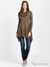 Стильная туника приталенного силуэта из полушерстяного трикотажа. Округлый вырез горловины, длинный рукав с ажурной вязкой, низ изделия оригинального кроя. В комплекте съемный ворот-хомут.