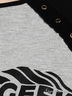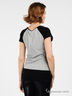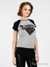 Детали: вырез лодочка горловины, короткие рукава реглан, модель присборена по бокам, декорирована печатным принтом на полочке и лентой с металлическими клепками.