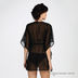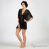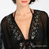 Туника из легчайшего шелка отлично подойдет для прогулки по пляжу. Цельнокроеный рукав-бабочка. V-образный вырез горловины. Под грудью расположена кулиска со шнурком, позволяющим регулировать силуэт, а так же глубину выреза. Ворот декорирован бисером и стразами.