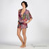 Туника из легчайшего шелка. Короткий цельнокроеный рукав. V-образный вырез горловины декорирован стразами. Пояс посажен на многорядную резинку.