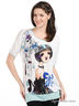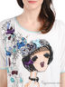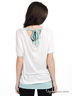 Детали: круглый вырез; короткий цельнокроеный рукав; низ изделия дополнен трикотажной лентой; сзади V-образный вырез с завязками; декорирована оригинальными аппликациями и нашивками и пайетками