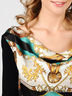 Детали: ворот с напуском, длинный прямой рукав, полочка декорирована оригинальным принтом