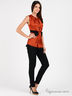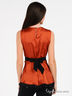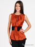 Детали: круглый вырез, без рукавов, сзади застегивается на пуговицу, спереди оригинально присборено, талия на втачном поясе и лентах