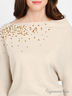 Великолепная туника оригинального кроя из мягкого эластичного трикотажа средней плотности. Вырез лодочка, длинный рукав, низ изделия на трикотажной резинке. Полочка декорирована россыпью страз. Отличный вариант на каждый день.