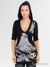 Туника Rocawear, женская. Модель прямого кроя, с V-образным вырезом горловины, с рукавами, с капюшоном на завязках. Туника оформлена по бокам на бедрах и на рукавах небольшими сборками, а так же принтом в виде различных надписей и украшена стразами.
