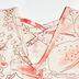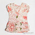 Очень женственная туника розового цвета. Вырез сзади V-образный, с переплетениями. Юбка туники состоит из двухслойных валанов.