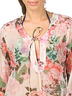 Длинная шифоновая туника. Рукава три четверти. Вырез и рукава на завязках. Снизу по боковому шву разрезы.