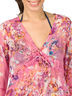 Длинная отрезная туника из шелковистого шифона. По отрезу лифа вшиты завязки, позволяющие регулировать размер. Рукава три четверти.
