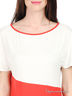 Детали: круглый вырез; короткий цельнокроеный рукав; ассиметричный крой низа изделия; контрастные вставки