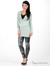 Детали: туника с драпировкой на груди, узкие длинные рукава, подол с бейкой, по линии талии небольшая сборка.