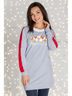Модель выполнена из мягкого хлопкового футера в актуальной расцветке с новогодним принтом. Рукава и нижняя часть собрана на широкий манжет из футера, а горловина выполнена из кашкорсе белого цвета.