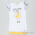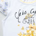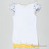 Детали: короткий рукав-крылышко декорирован шифоновыми оборками, полочка декорирована набивным рисунком, стразами и атласными ленточками, низ изделия декорирован рюшами.