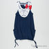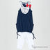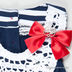 Детали: застежка на пуговицы на спине, полочка декорирована вязаным кружевом, стразами и отстегивающейся брошью в виде банта, низ изделия на кулиске. В комплекте леггинсы