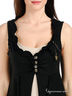 Детали: V-образный вырез с рюшами, без рукавов, спереди застегивается на пуговицы