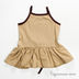 Модель на бретельках с заниженной талией и расклешенной присборенной юбкой. Декоративный тканевый пояс завязывается на бант. Полочка украшена нашивкой.
