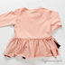 Округлый вырез горловины. Застежка на перламутровые пуговицы спереди. Манжеты и разноцветные оборки обработаны оверлоком.