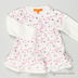 Детали: эффект двойки, округлый вырез горловины, застежка на три кнопки на левом плечике, длинный рукав, сборки; полочка декорирована маленьким атласным бантиком, изделие украшено рисунком