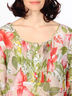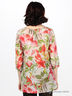 Детали: округлый вырез горловины, укороченный рукав, манжеты на пуговице, застежка на пуговицы на полочке, сборки на полочке, принты
