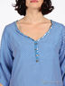 Легкая туника из легкой хлопковой ткани отлично подойдет для прогулок по пляжу. Широкий округлый вырез, застегивается на крючки. Свободный рукав 3/4 с кулиской и шнурком, регулирующим форму и длину рукава. Свободный силуэт. Изделие декорировано стразами.