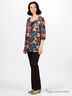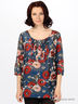 Детали: округлый вырез горловины, укороченный рукав, манжеты на пуговице, застежка на пуговицы на полочке, сборки на полочке, принты