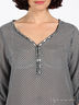 Туника свободного кроя из гладкого материала. Рукава 3/4, v-образный вырез, застегивается на пуговицы, рукава присборены на веревочку.