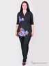 Стильная туника из мягкого материала с изящным цветочным рисунком на полочке. V-образный вырез горловины с запахом. Отрезной лиф. Облегающие рукава 3/4. Завышенная линия талии.