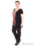 Великолепная туника из вискозного материала. Модель полуприталенного силуэта. Широкий округлый вырез горловины. Короткие облегающие рукава. На полочке крупная красочная вставка.