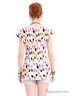 Детали: плиссированная туника, ворот имеет круглый вырез, короткие рукава, изделие выполнено в оригинальной летней расцветке.