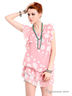 Детали: туника с коротким рукавом, приталенная по линии бедра, присутствуют воланы по низу изделия и на рукавах.