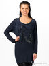 Стильная женская туника свободного кроя, c широким округлым вырезом горловины и длинными рукавами. Изделие украшено металлическими вставками.