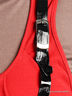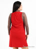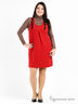 Яркая туника из мягкого, приятного на ощупь трикотажа. Глубокий U-образный вырез горловины. Декоративные пряжки с черными ремешками на лямках. У ворота заложены эффектные складки. Два накладных кармана.