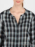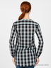 Элегантная туника из тонкой, мягкой ткани. Фигурный вырез горловины. Застежка на планку с пуговицами. Длинные рукава дополнены патами на пуговицах для фиксации подворотов. Полочки декорированы вертикальными защипами и ажурными узорами.