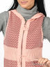 Детали: застежка на молнию, капюшон, пояс на трикотажной резинке в рубчик с продетым в него шнурком, регулирующим ширину изделия