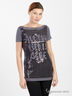 Прелестная туника с короткими рукавами и воротником лодочка. Модель декорирована пайетками и оригинальным принтом спереди.