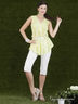 Туника без рукавов, с v-образным вырезом горловины. Спереди модель декорирована рюшами. Изделие дополнено тонким пояском. Отличный вариант для создания романтичного образа.