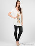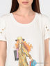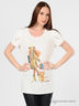 Детали: круглый вырез, короткие рукава украшены пуговицами, на полочке оригинальный принт, по бокам небольшие разрезы