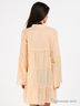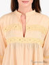 Детали: воротник-стойка с вырезом, длинные расклешенный рукава, низ украшен воланом, изделие дополнено кружевными вставками, бисером и пайетками