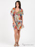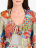 Детали: v-образный вырез на завязке, ворот украшен пайетками, короткие широкие рукава, заниженная талия посажена на резинку, яркий оригинальный принт
